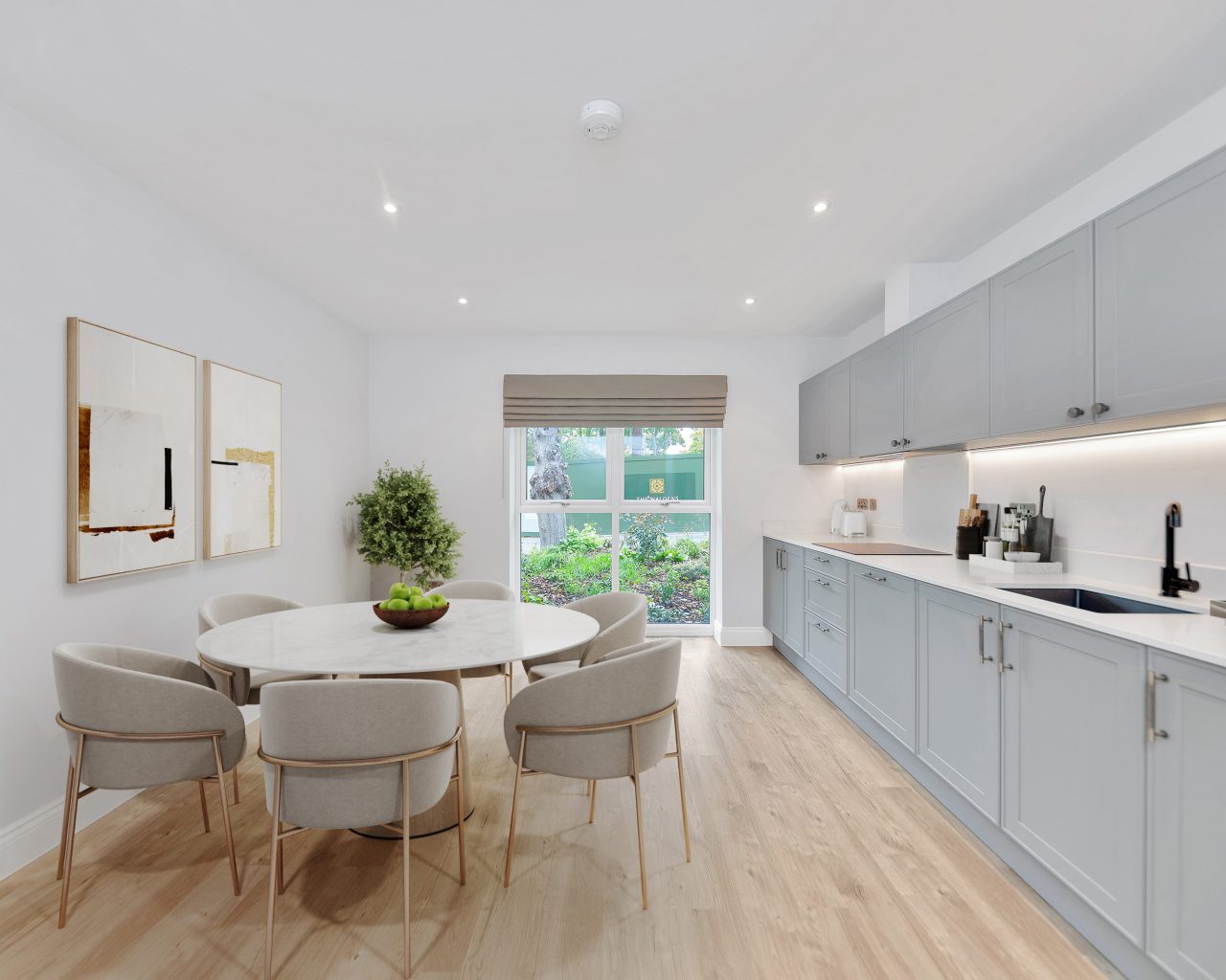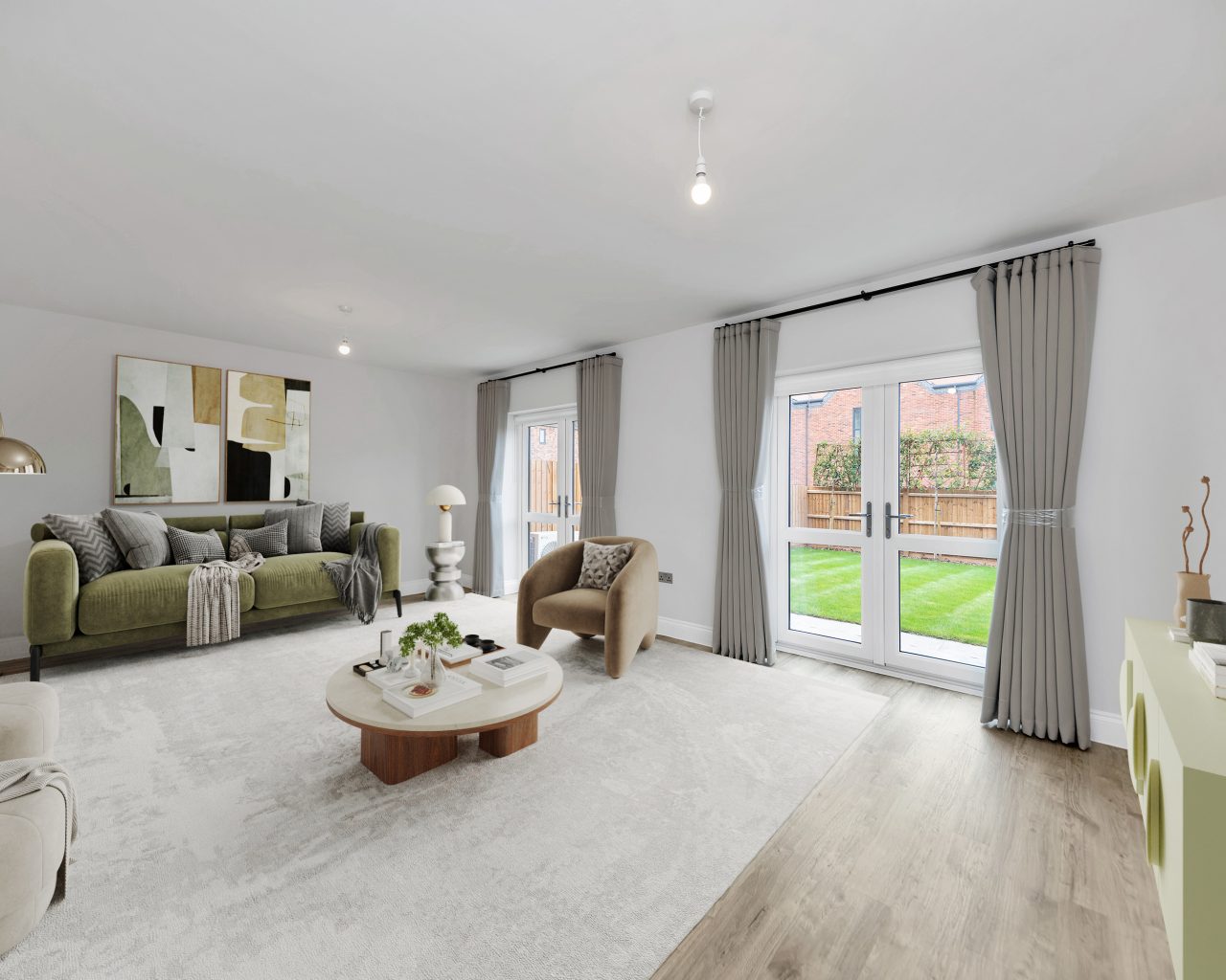Plot 36 at The Assembly Hall offers a unique design and over 1,400 sq ft of spacious, contemporary living. This large three-bedroom home is built to the highest standards with exceptional finishes throughout. Upon entering, you’ll find a thoughtfully designed layout featuring a modern cloakroom, Amtico Spacia flooring, and a bright lounge with two French patio doors opening to the rear of the property.