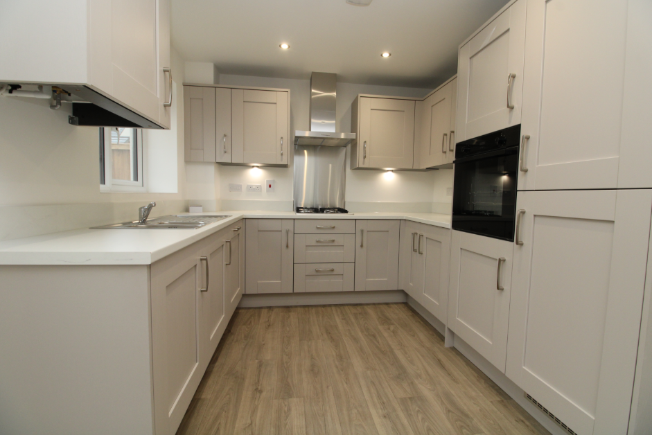 To the rear of the property, the open-plan kitchen and dining area forms the heart of the home. Designed with both practicality and entertaining in mind, this bright and sociable space benefits from French doors opening out to the garden, allowing natural light to flood in and offering seamless indoor-outdoor living during the warmer months.