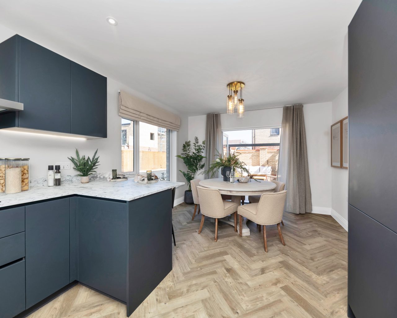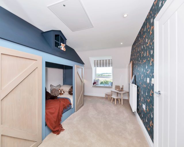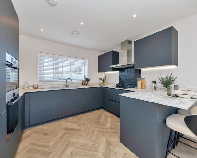 This home also includes a host of premium upgrades such as Amtico Spacia flooring, plush carpets throughout, and sleek silestone kitchen worktops. The kitchen is fitted with a full suite of integrated Bosch appliances, including a stainless steel chimney extractor hood, built-in oven with combi-microwave, 5-zone induction hob (4 & 5 bed homes), fridge freezer, dishwasher, and washer/dryer (or designated utility space for freestanding units where applicable). Energy efficiency and comfort are built-in, thanks to an Air Source Heat Pump wet traditional heating system, underfloor heating to the ground floor, and thermostatically controlled radiators throughout the rest of the home.