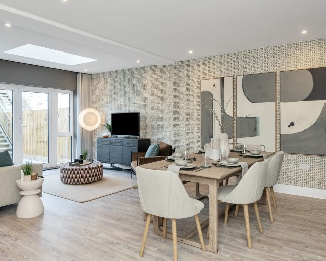 Also on the ground floor, you’ll find a useful utility room tucked neatly off the hallway, as well as a downstairs WC, both continuing the high-end Amtico finish. At the front of the home, a spacious and versatile dining room awaits, ideal as a formal dining area, home office, or even a playroom, whatever suits your lifestyle.
