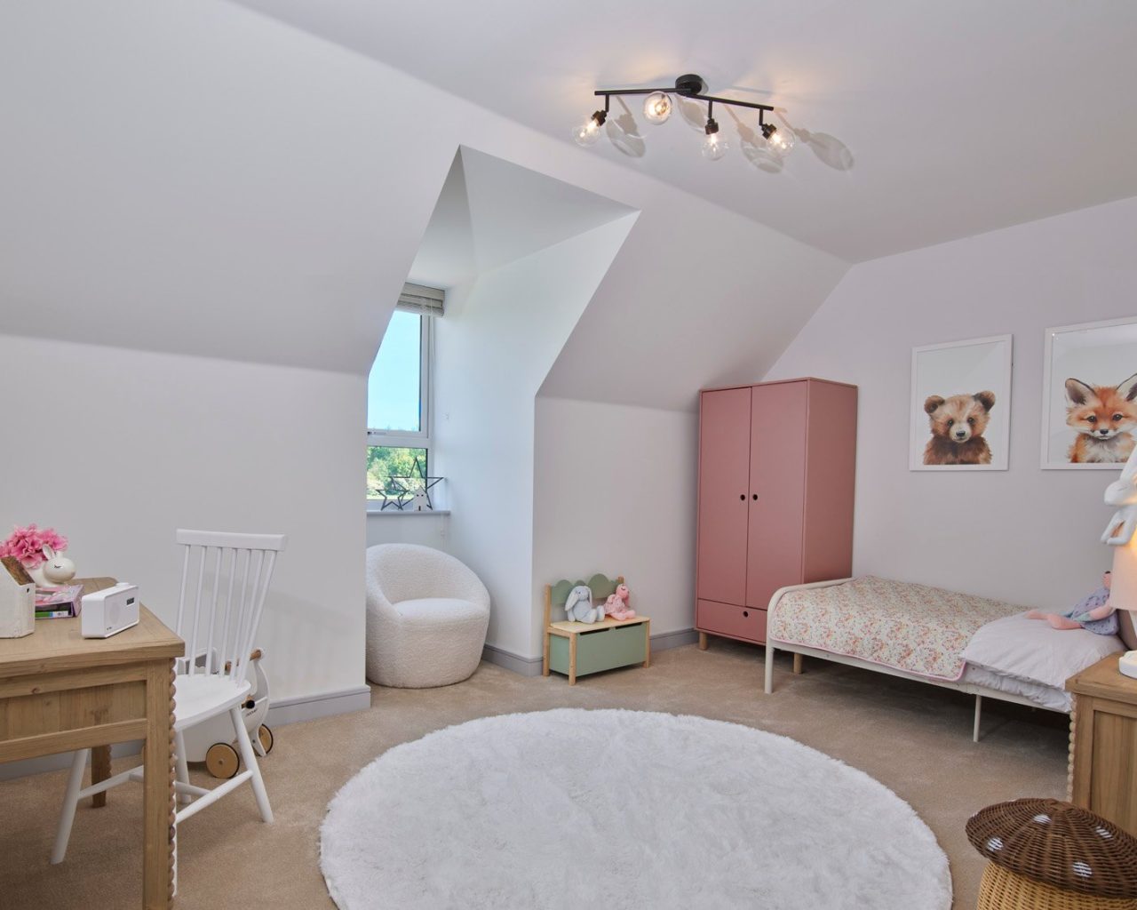 - Five generously sized bedrooms, including a principal suite with fitted wardrobe.