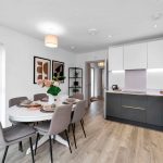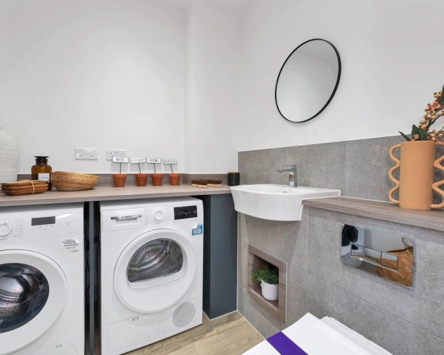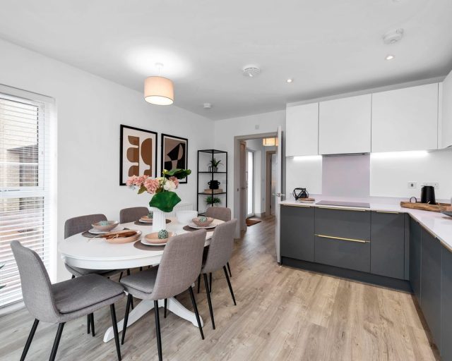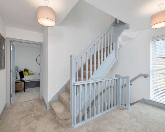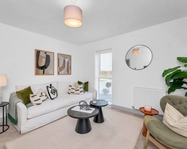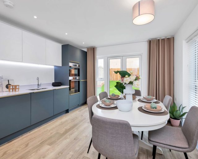 Step inside The Tummel and you’re welcomed by a bright, airy entrance hall leading to a contemporary open-plan kitchen and dining area, featuring stone worktops, soft-close cabinetry, Bosch integrated appliances and French doors opening onto the rear garden, ideal for everyday living and entertaining. A separate living room at the front of the home provides a cosy retreat with plenty of natural light. There’s also a convenient cloakroom and storage on this floor.
