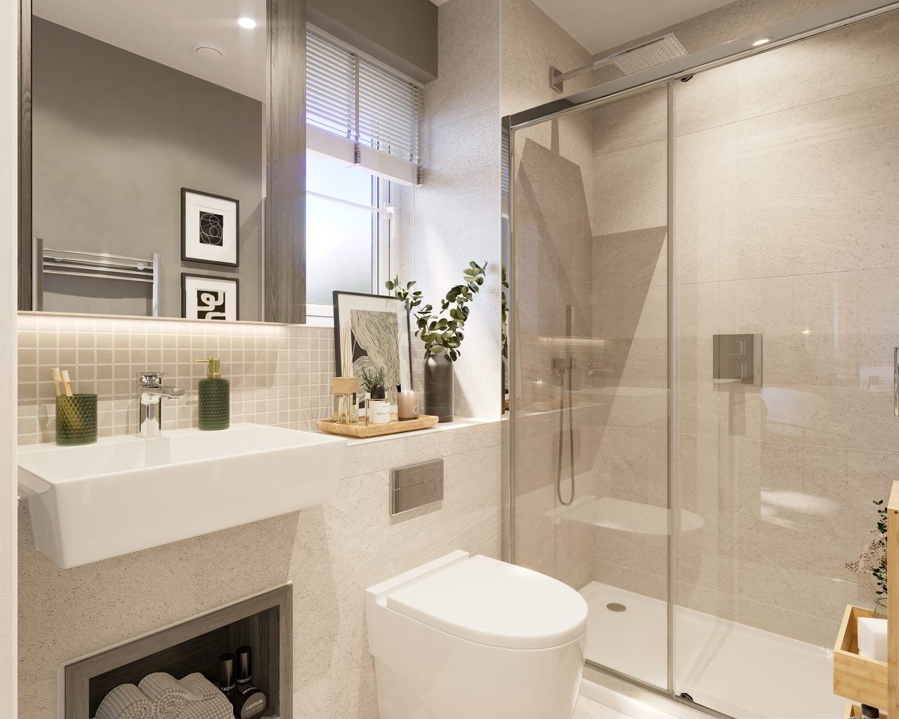 Fully fitted bathrooms with chrome fixtures & fittings & ROCA furniture